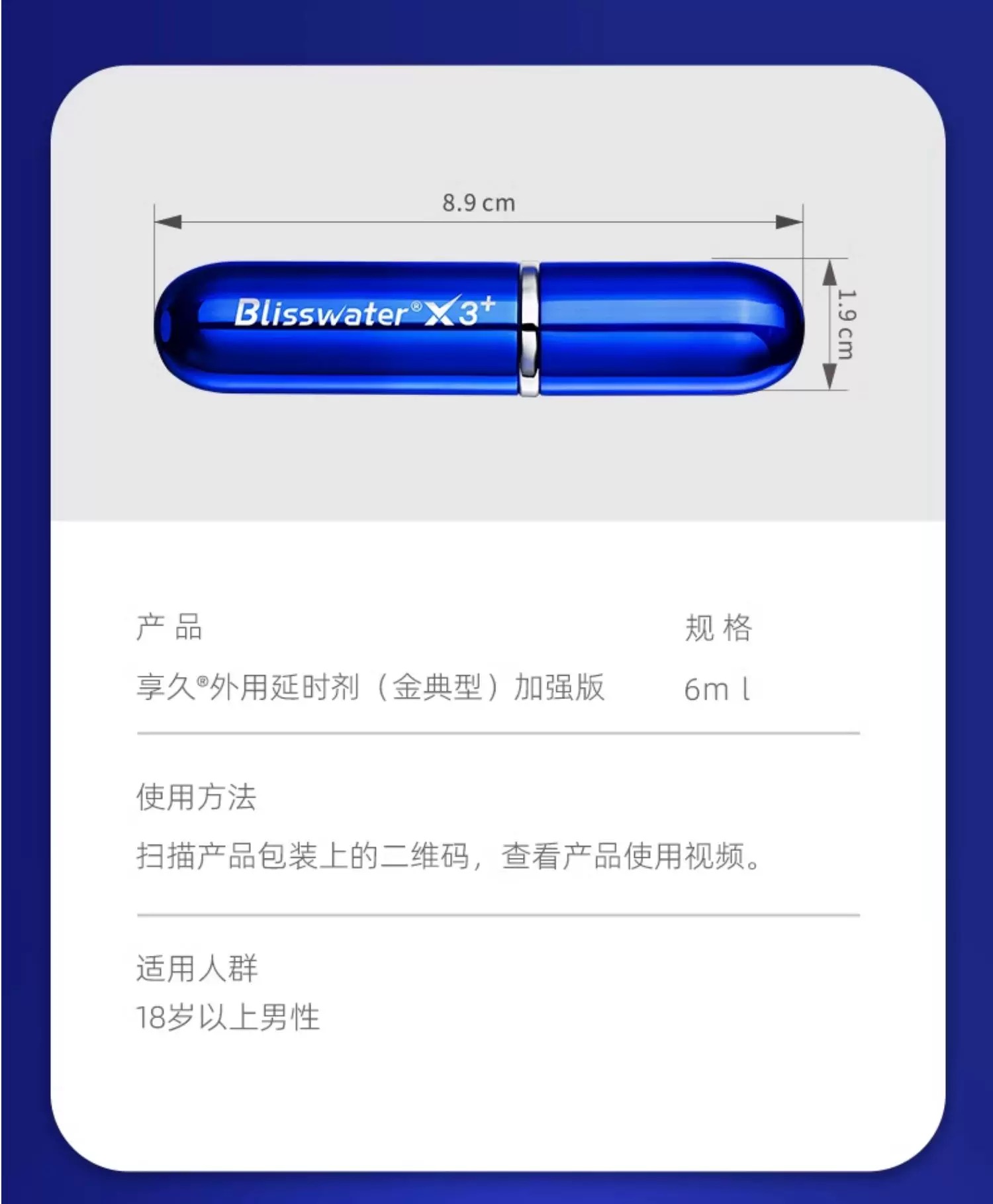 ◾享久3代金典型(外用延时) 用于解决敏感性早泄外用延时喷剂。享久外用延时喷剂算是外用延时的天花板,效果非常好,纯天然配方,不麻木口爱无察觉,最大程度保留啪啪啪快感,2代在喷剂界还不算最优秀,所以享久3代在2代的基础上做了比较大的改进和优化,加入了更多天然植物精华(如红高颗)并且才用了新式微粒技术,使得吸收速度更快,效果更持久,享久3代体验感进一步提升,比二代温和很多,延时效果顶呱呱 ◾成分:红高颗、达米阿那、丁香、绿茶、人参、淫羊藿、秦椒、乙醇、马鹿 茸 ◾效果:延时 ◾特点:纯天然 无副作用 效果好 ◾规格:一瓶6ml